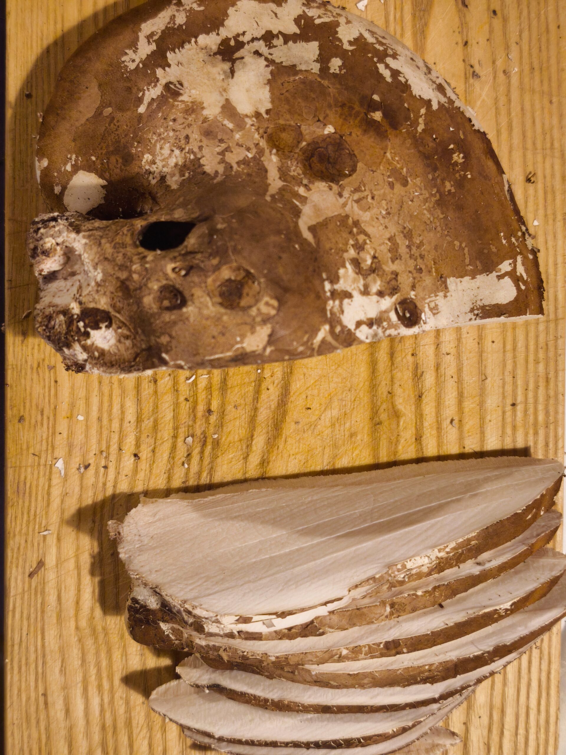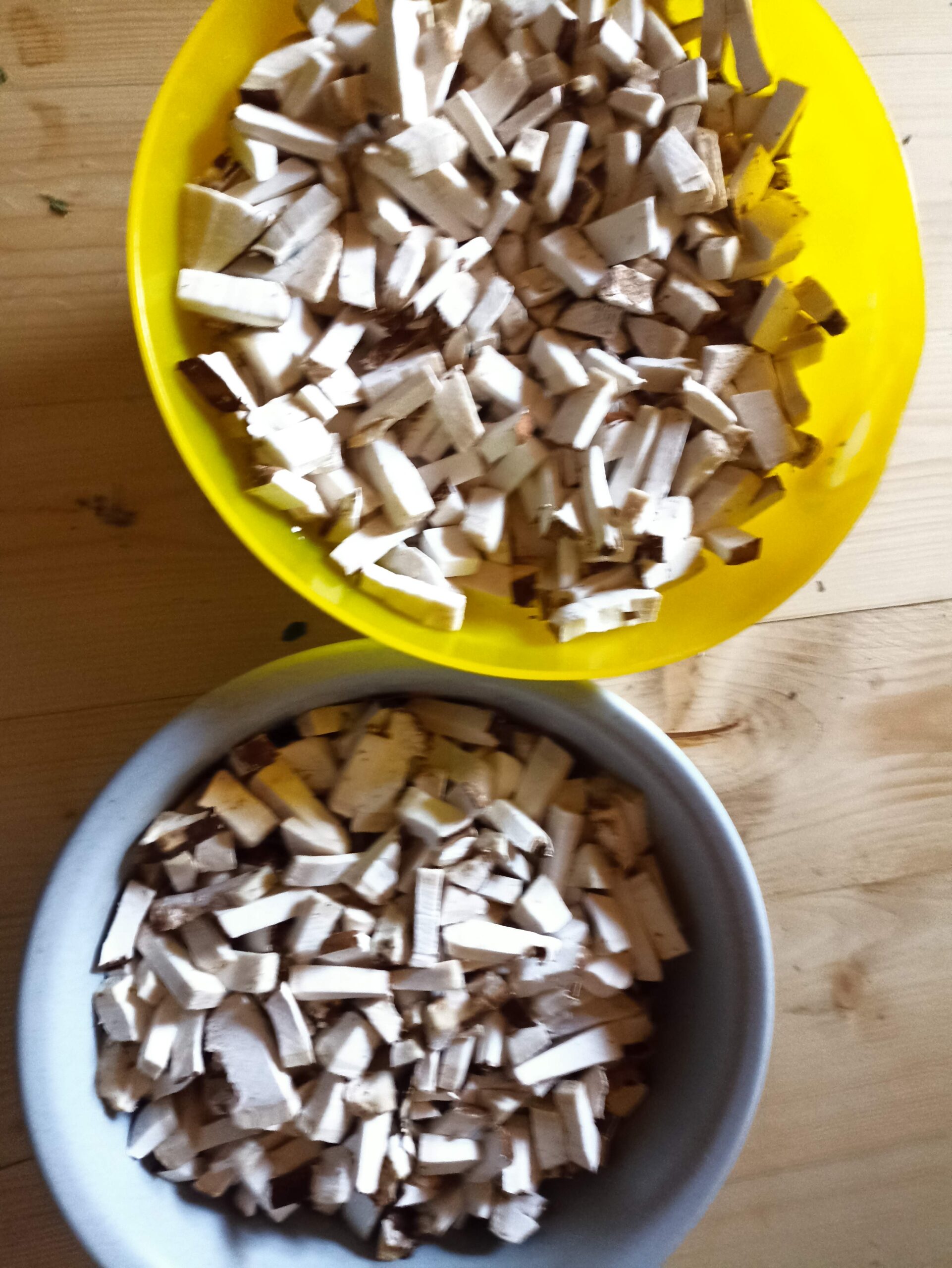 Čerstvý březovník nakrájím ostrým nožem nejprve na plátky a poté na menší kostičky. Suchou plodnici by už nakrájet nešlo, protože po usušení výrazně ztvrdne.