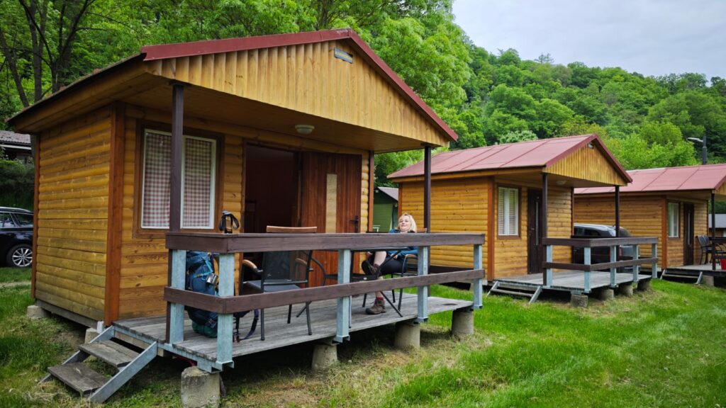 V kempu se rozhodujeme, zda budeme spát ve stanu či v chatce. V noci mají být 2 stupně, takže vítězí chatka. Zítra bude stan. Sice nám paní říká, že chatky pro 2 jsou všechny obsazené, ale na cílený dotaz, zda mají volnou chatku pro 3, odpovídá, že ano.