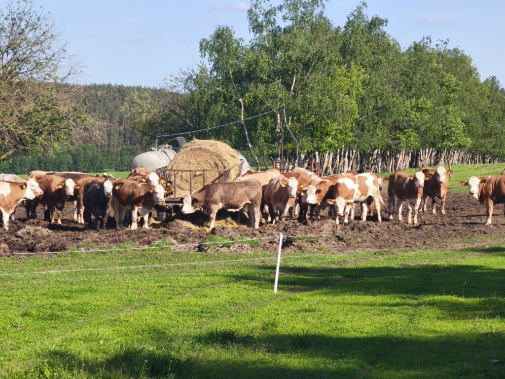 Cestu nám zpestřuje vetchý most skládající se z propadajících se kovových rohoží. Bojíme se, že propadneme do Dyje. Část cesty vede skrz ohradu se zvířaty. Bylo by možné ji obejít, ale to se nám nechce. Prý je možné ohradou v pohodě projít, říkali někteří stezkaři, kteří už tudy šli. Tak tedy jdeme. Narážíme ale na stádo krav. S respektem je z dálky obcházíme. Ohradník ale musíme s těžkým báglem podlézt. Pak podlézáme ještě další a další ohradníky. Je to adrenalin. Přicházíme k vypuštěnému rybníku s bahnem. Kolem něj je vybagrovaná asi 3 m hluboká strouha. Šmarja. Jak dál? Slézáme do rybníka a přecházíme po 2 kládách vodu vytékající z rybníka. Pokračujeme ke Slavonicím.