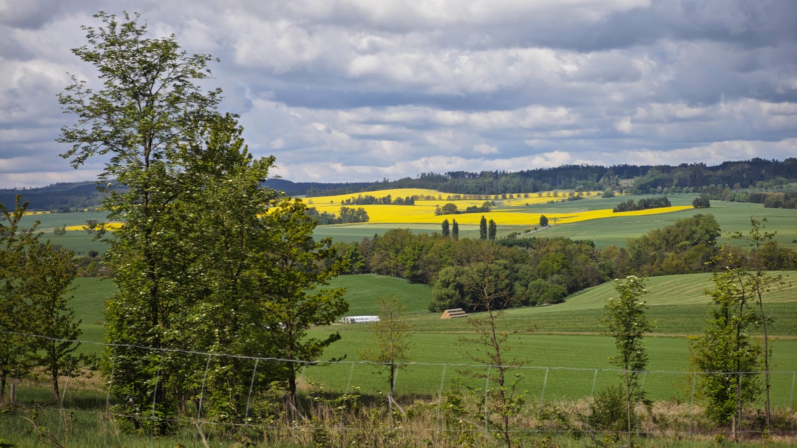 Zprvu musíme 3 km po asfaltové silnici. Všichni normální lidi v neděli spí, takže auta moc nejezdí a je pod mrakem, což je milosrdné. Potkáváme jen pár cykloturistů. Krajina je kolem dokola ale nádherná. Prostě pravá Česká Kanada. Probírame včerejší osobní krize. Včera jsme si v duchu každý říkali, zda jeden nebo druhý nenavrhneme, že pojedeme domů už ze Slavonic. Ale dnes víme, jaká by to byla obrovská škoda. Dnešní cesta je prostě přenádherná. El ve fantazii přemýšlí, jaké by to bylo, kdyby nás pozorovali mimozemšťani: Celý rok tyhle osůbky chodí pořád jen tam a zpátky na pár míst, které nejsou příliš vzdálené od domova, ale jednou za čas se tyhle podivné bytosti (my), z tohoto schématu odchýlí a od domova se vzdálí na větší vzdálenost. Z nějakého důvodu dělají věci, které je úplně vysílí, aby se pak opět vrátily na svoji značku, ze které zase budou vycházet jen tam a zpět.